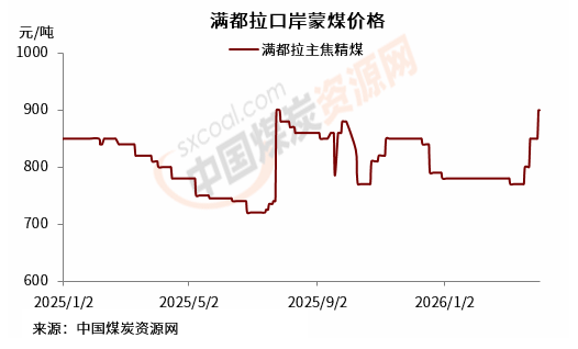 满都拉口岸方面,口岸整体成交表现不佳,不过个别煤种资源较少对价格起到支撑作用。截止4月3日,满都拉口岸主焦精煤库提含税价900元/吨,周环比上涨50元/吨。
