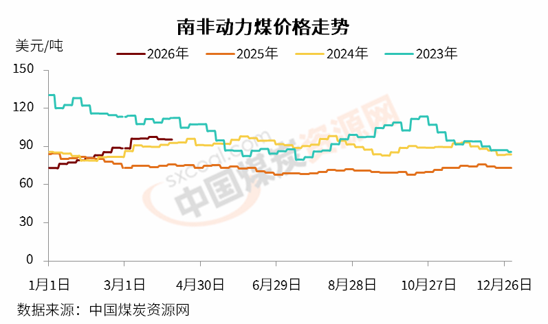 同时,南非国内物流成本也面临上行压力,中东冲突导致的燃油价格上涨,增加了用卡车向理查兹湾煤炭码头(RBCT)和其他煤炭转运站运输煤炭的成本,部分供应商因此选择观望或控制出货量。尽管整体供应受物流成本影响存在一定收紧,但需求端疲软以及部分买家转向其他来源煤,导致南非煤在主要进口市场的竞争力下降。
