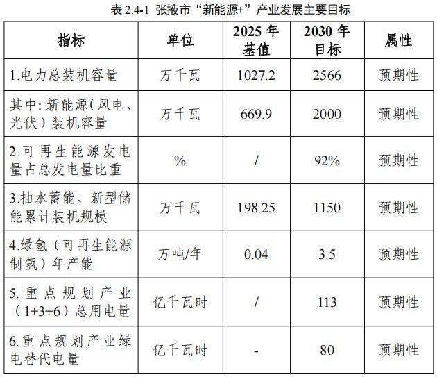 规划显示,到2030年,甘肃张掖市新能源(风电、光伏)装机容量计划达到20GW,可再生能源发电量占比达到92%。