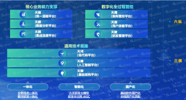 远光九天平台是基于全栈自主创新技术路线,采用云原生架构,以AI为核心驱动力的数字生产力平台。平台以企业架构为牵引,以智能引擎为驱动,涵盖从需求、设计、开发、测试、部署到运维的软件研发全生命周期,通过低代码开发、数字化管控、数据智能、高效集成等能力,可为企业提供全栈自主可靠的数字化支撑,帮助企业加强技术管控、提升生产效能、加快业务创新、建立产业生态,全面提升企业的数字化生产力,赋能企业数智化转型升级。