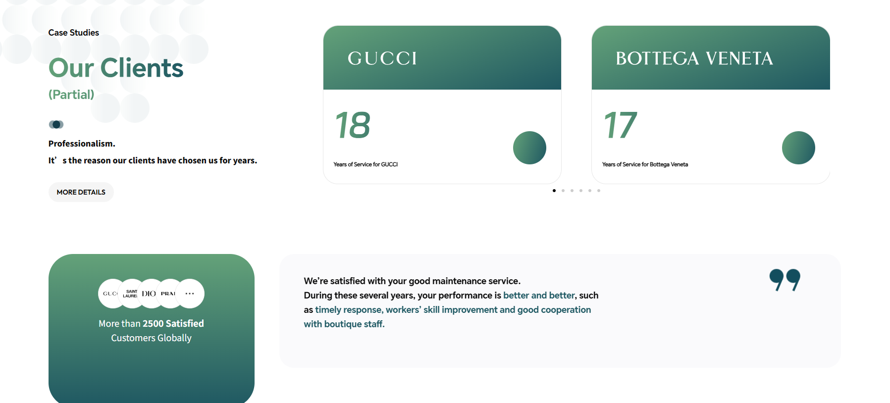置安的服务清单中,列举了大量与全球顶级奢侈品集团的合作案例,这些案例真实反映了其服务深度: